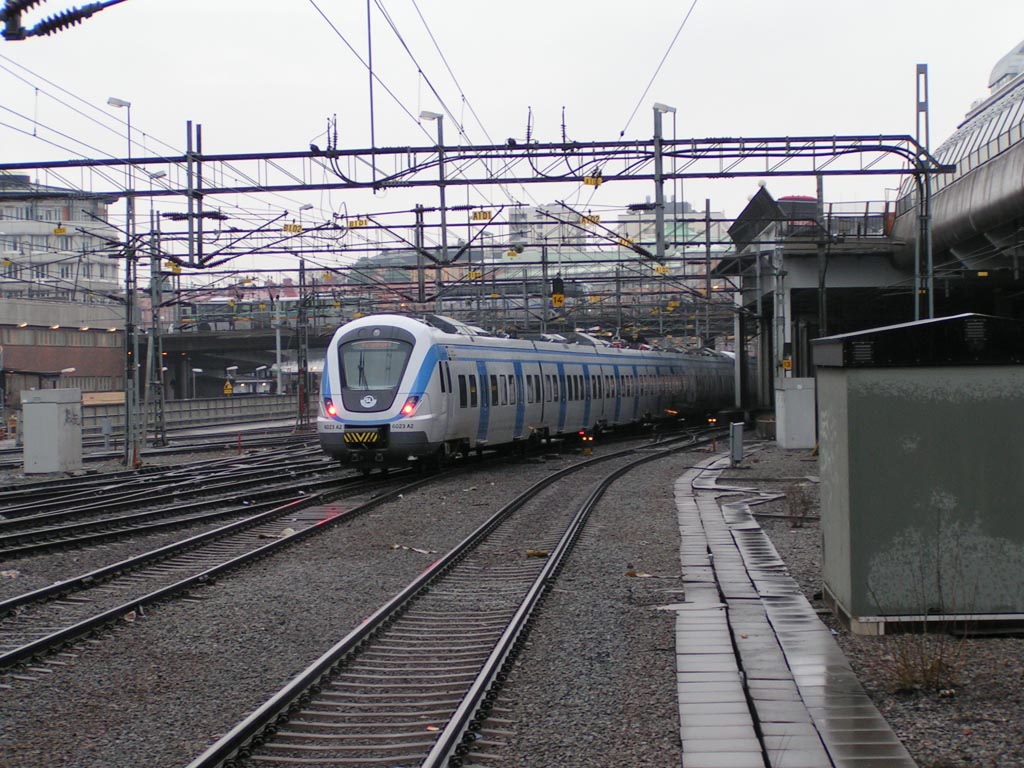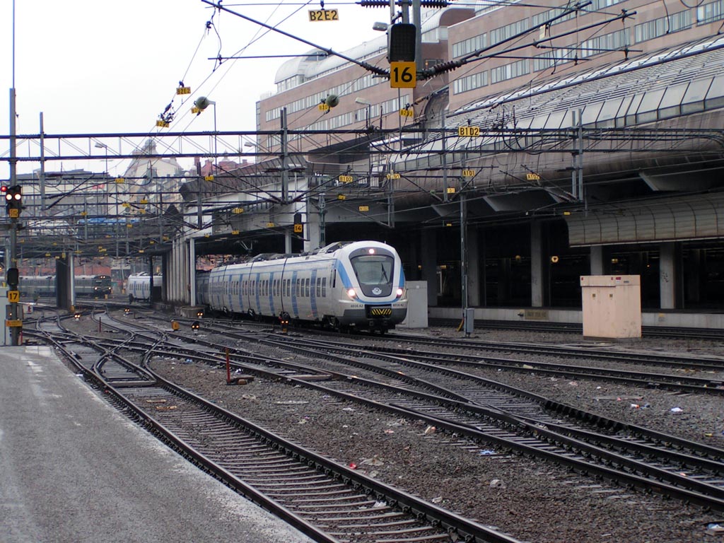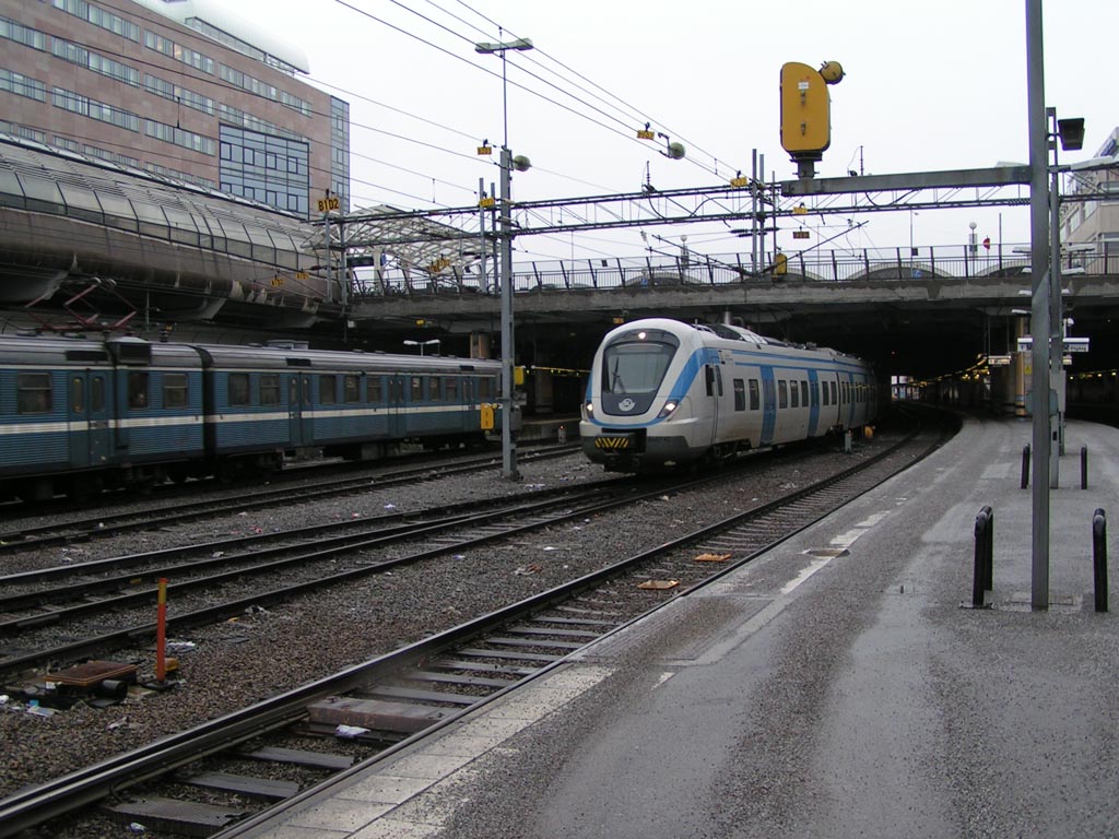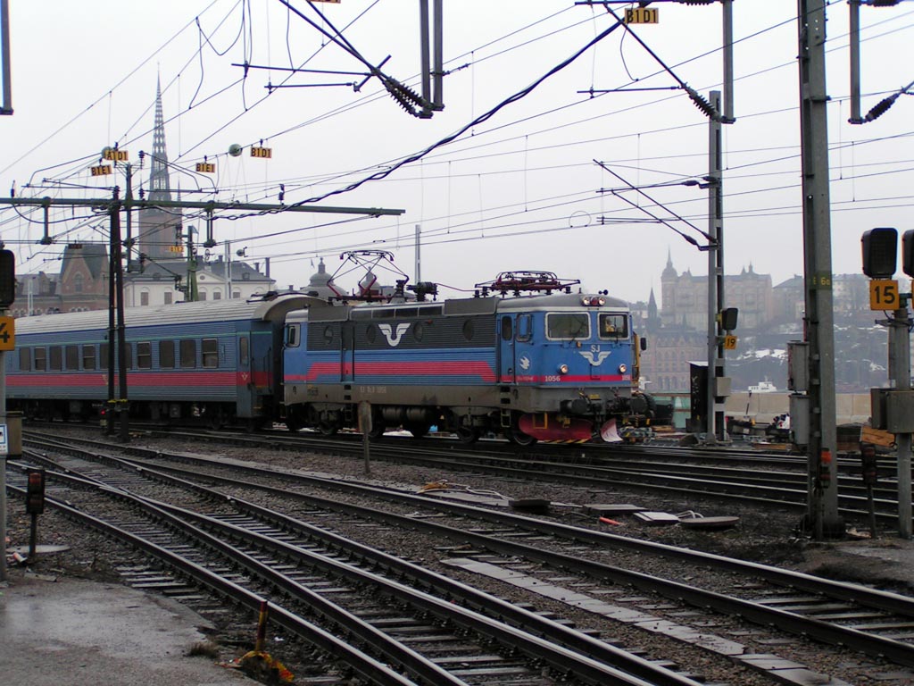 Rc3 1056 med persontåg på väg in på Cst. |