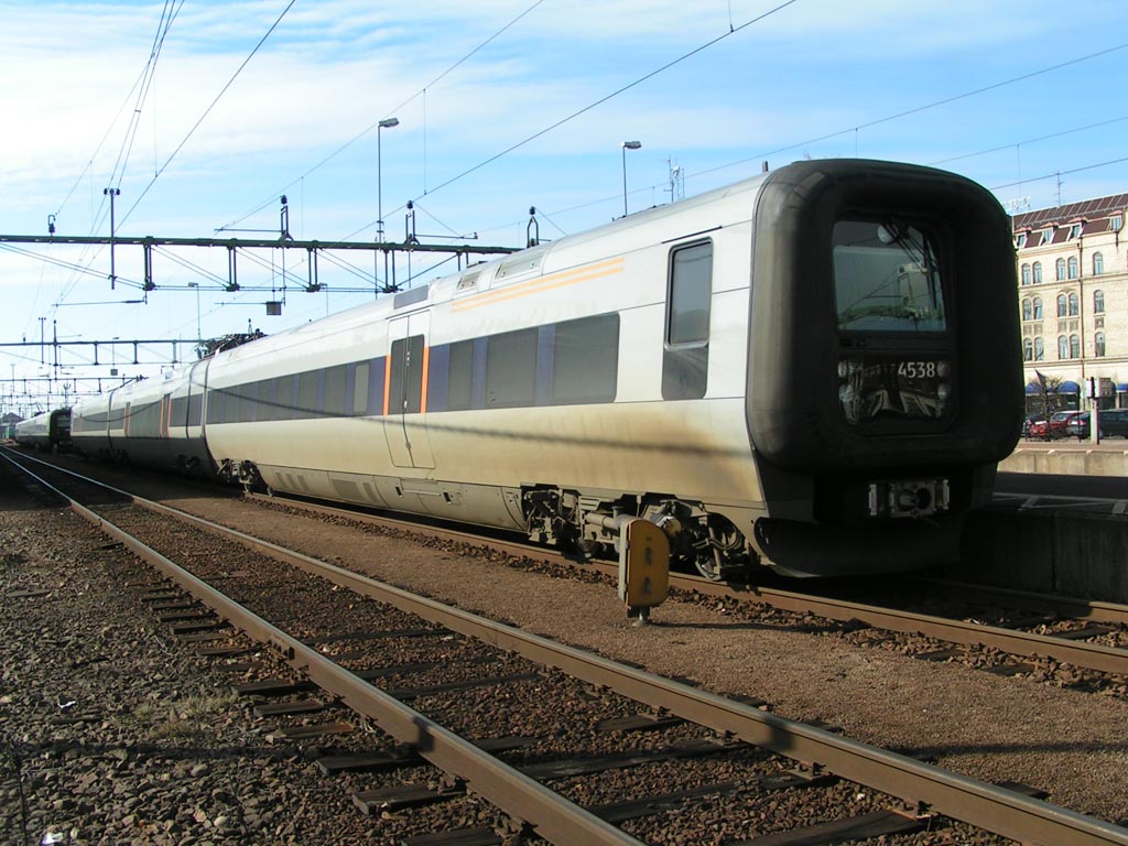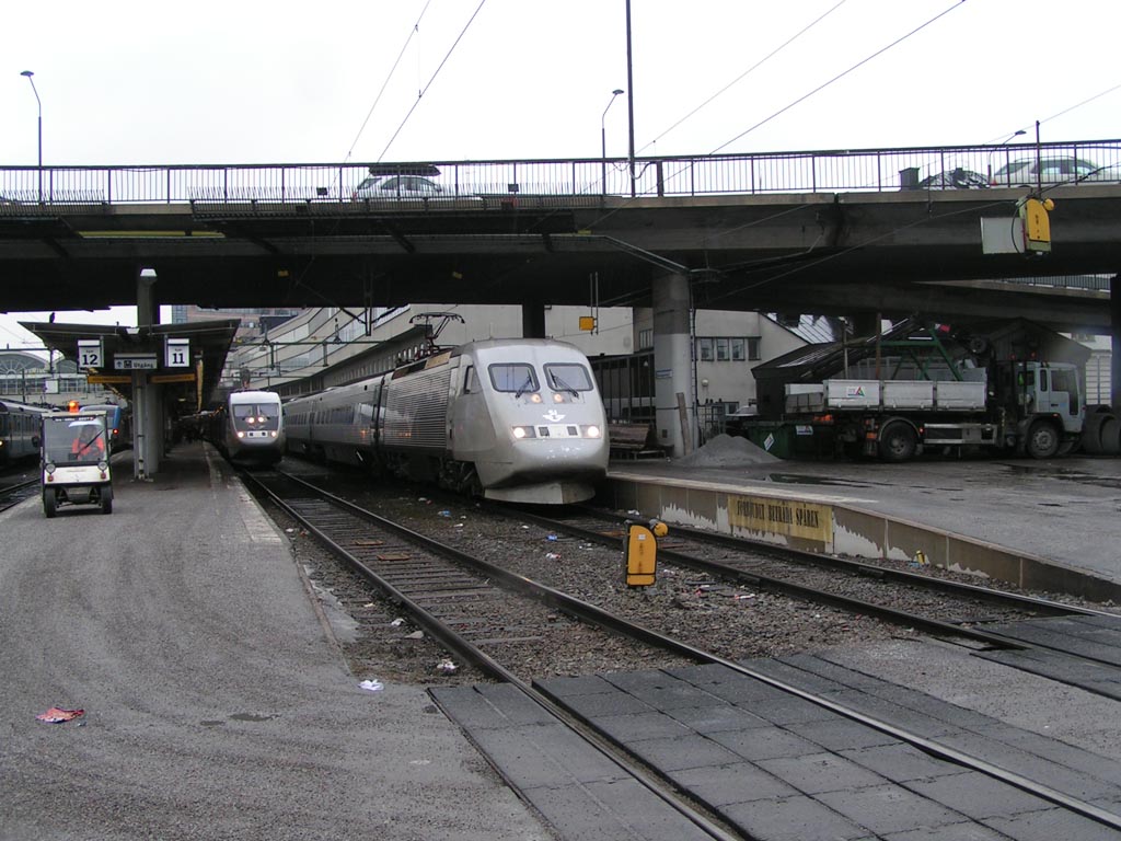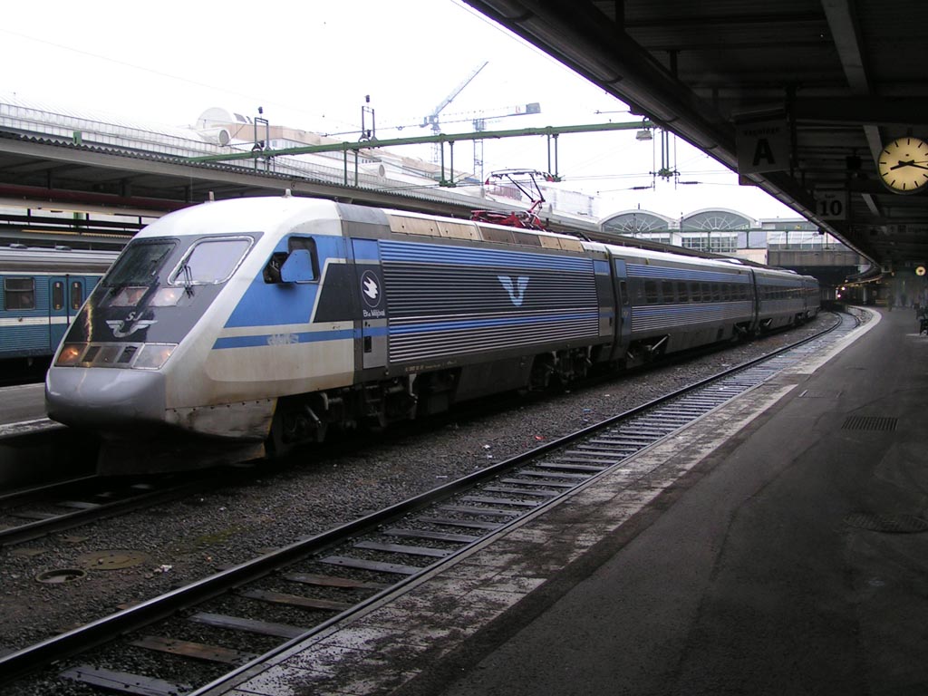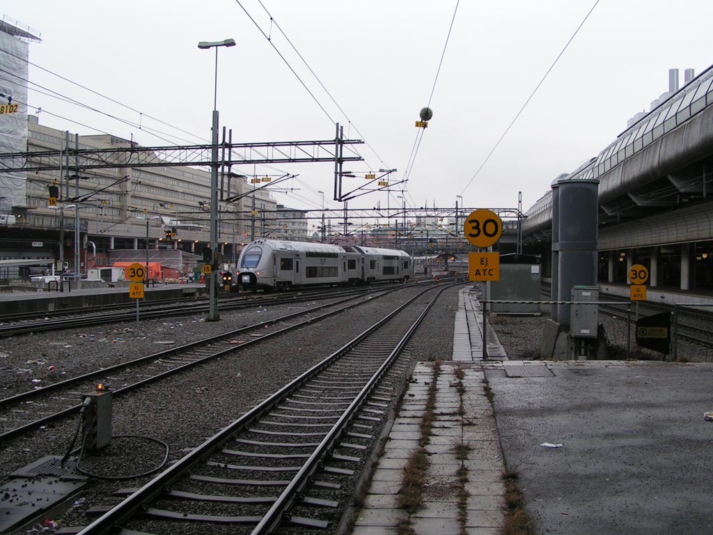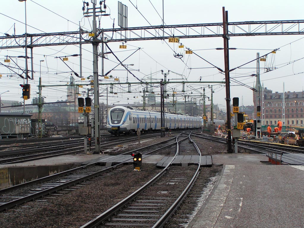 Rc3 1056 med persontåg på väg in på Cst. |