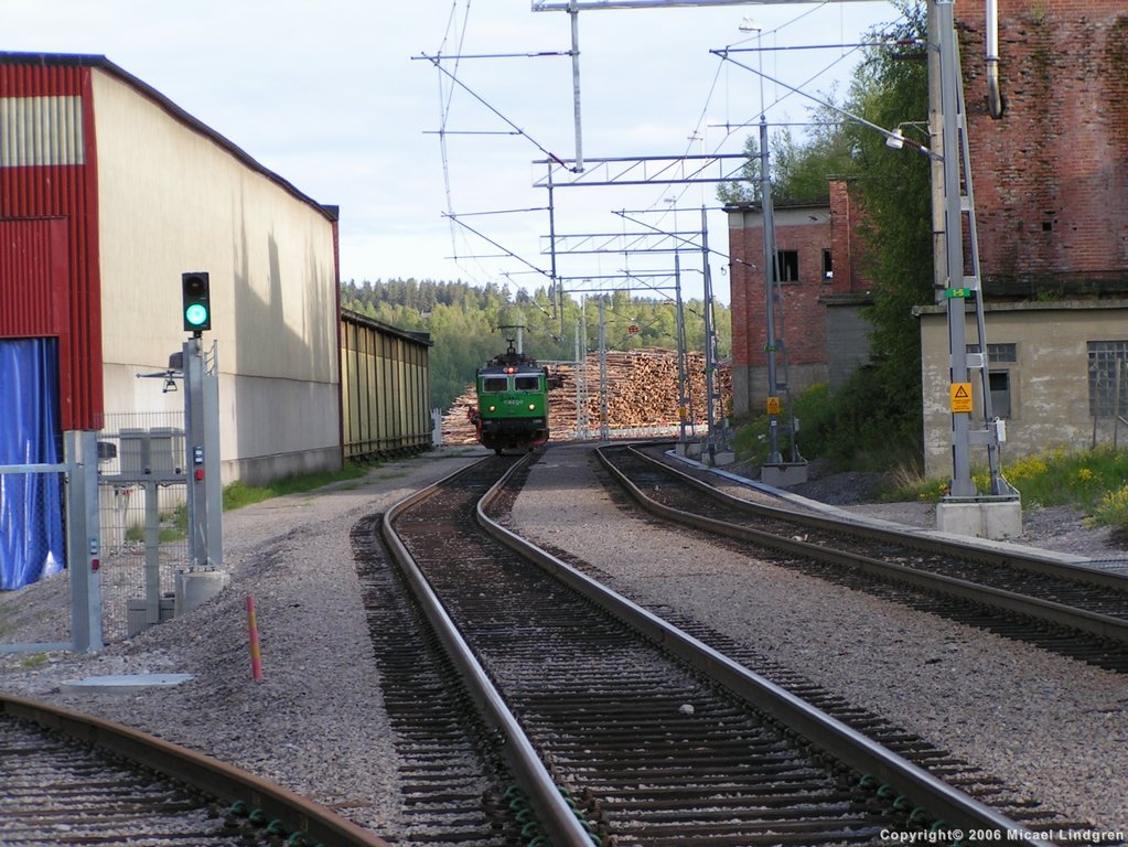gå runt för att styra in tåget på timmerterminalen. |