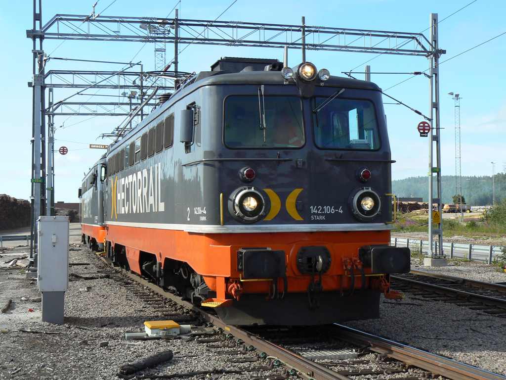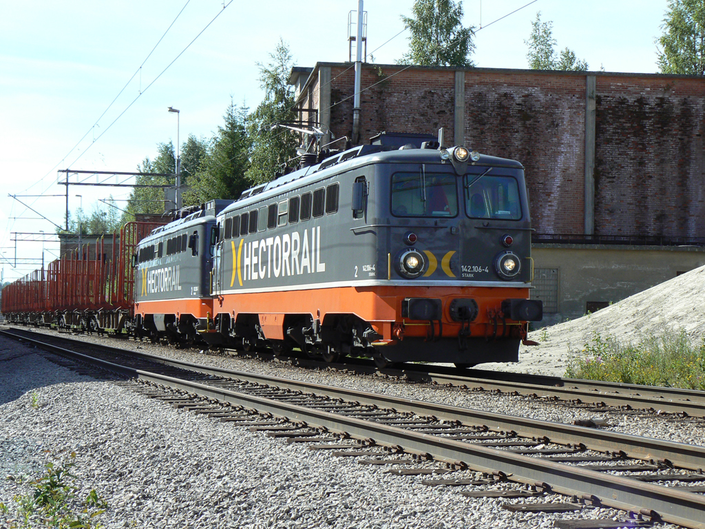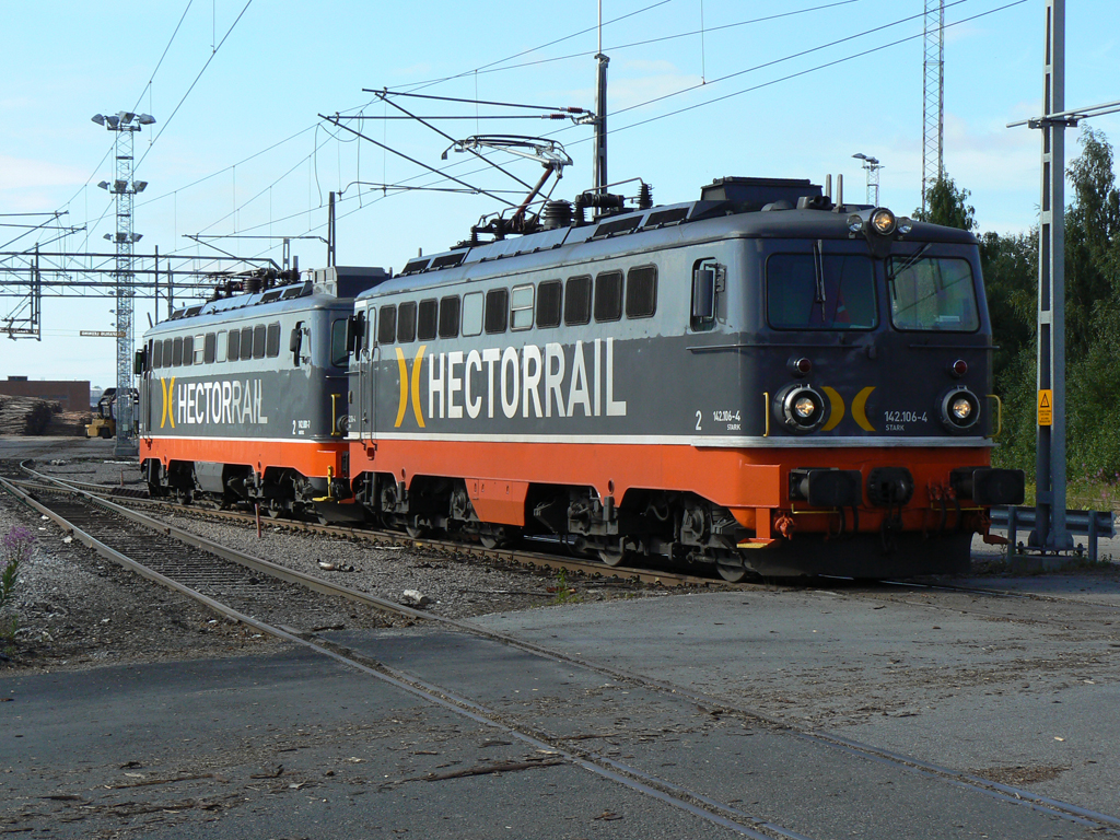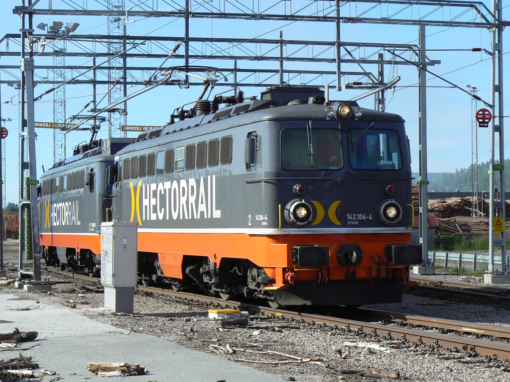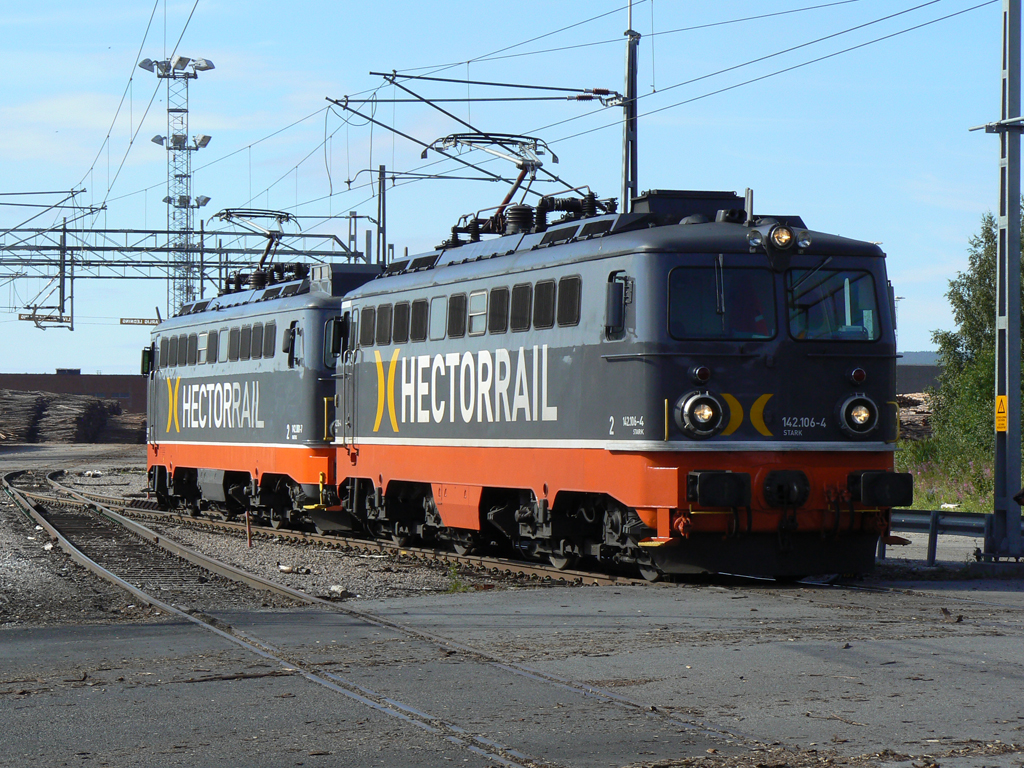 Hector Rail levererade timmer på Domsjö Fabriken 2008-07-15 när ÖJS besiktigade YBo6 773, nedan ser ni bilder. Loken hade littera 142.106-4 STARK och 142.001-7 MARTINS. Samtliga bilder är tagna av Micael Lindgren.