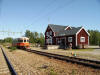 och på denna bild syns både biljettlucka samt stationsbänk. |