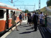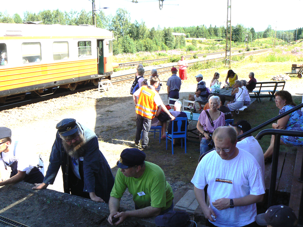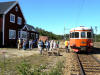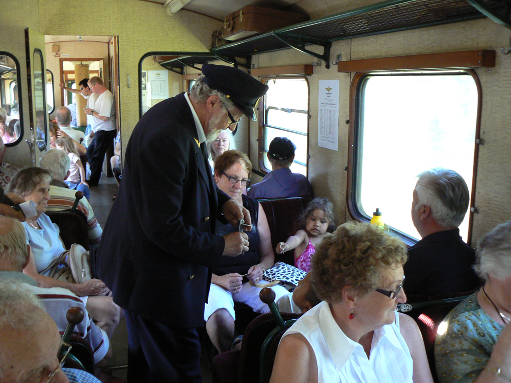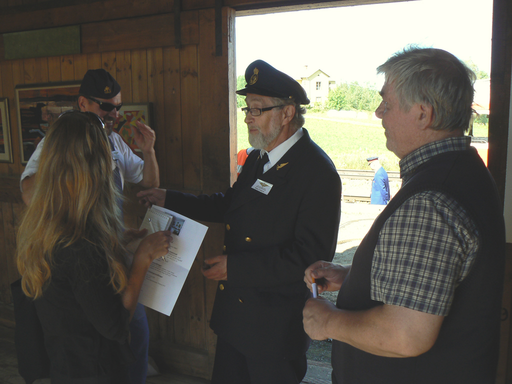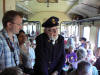 Konduktör Bengt Lindgren samtalar med resenärer i