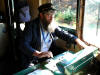 Lokförare Pelle Björkman kör rälsbussen söderut. |