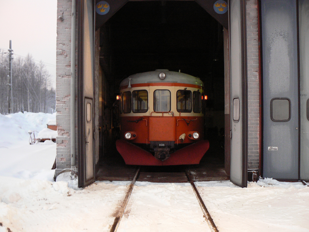 Y8 1135 ankommer till lokstallet i Mellansel. |