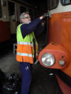 Ordförande Bengt Lindgren slipar på YBo6 773. |