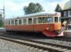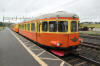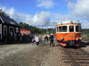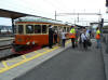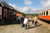 Resenärer kliver av rälsbussen i Björnsjö. Foto: Micael Lindgren. (dålig bildkvalitet pga fel ISO) |