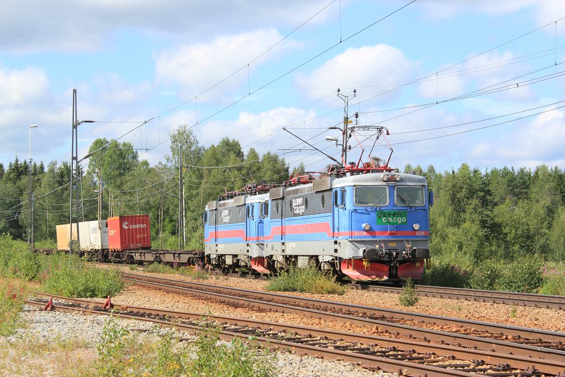 Tågmöte med Green Cargo Rc4 1134 och Rc4 1142. |