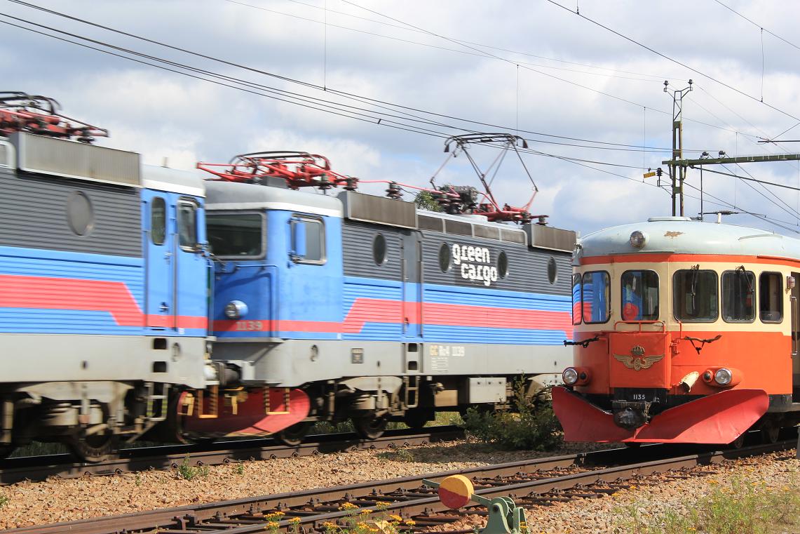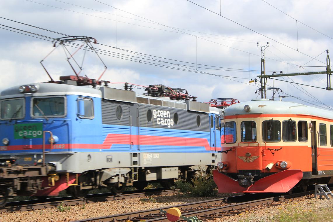 Tågmöte med Green Cargo Rc4 1134 och Rc4 1142 som här passerar Y8 1135. |