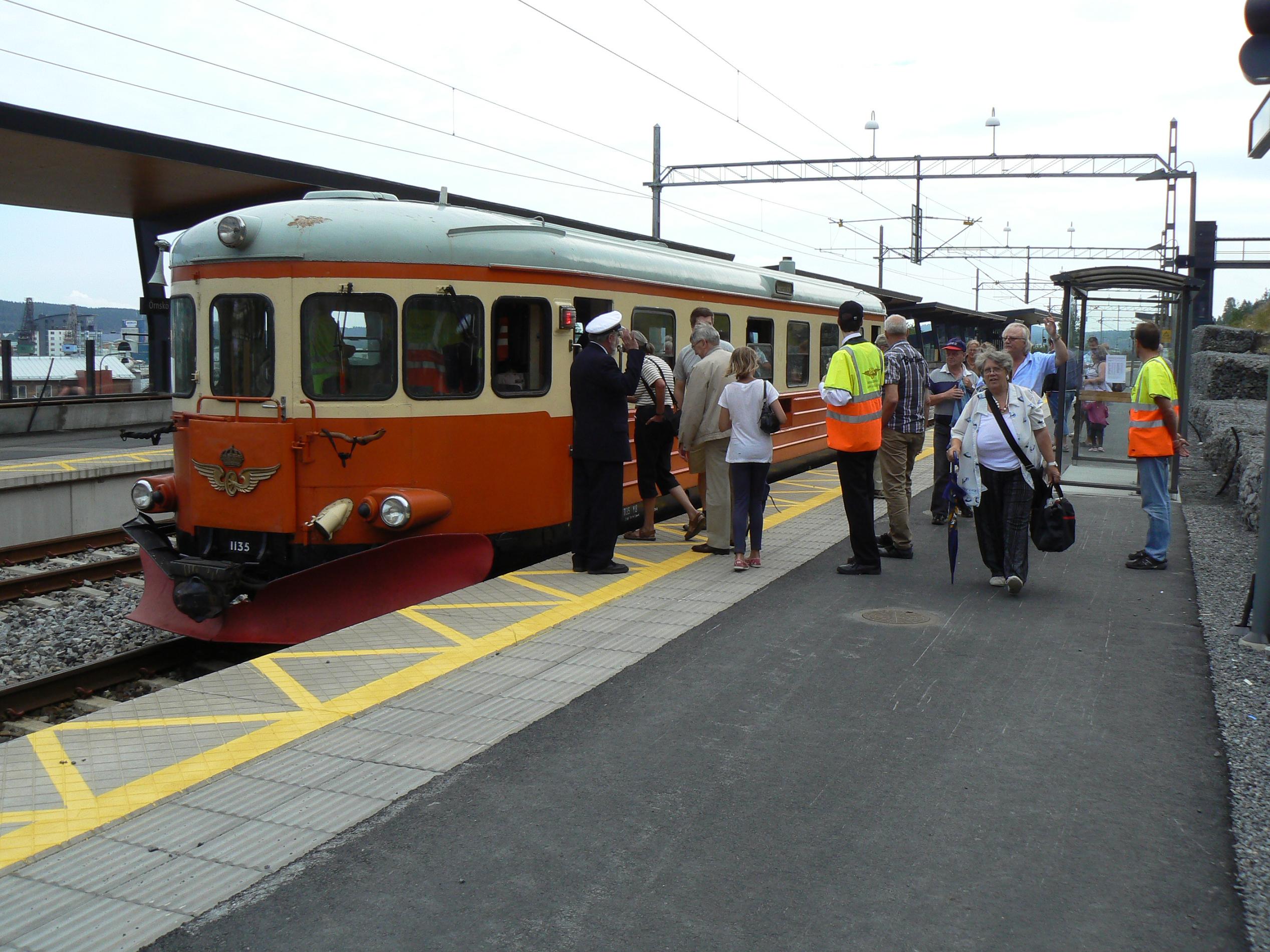 Ankomst i Örnsköldsvik med många glada resenärer samt personal. Foto: Micael Lindgren. |