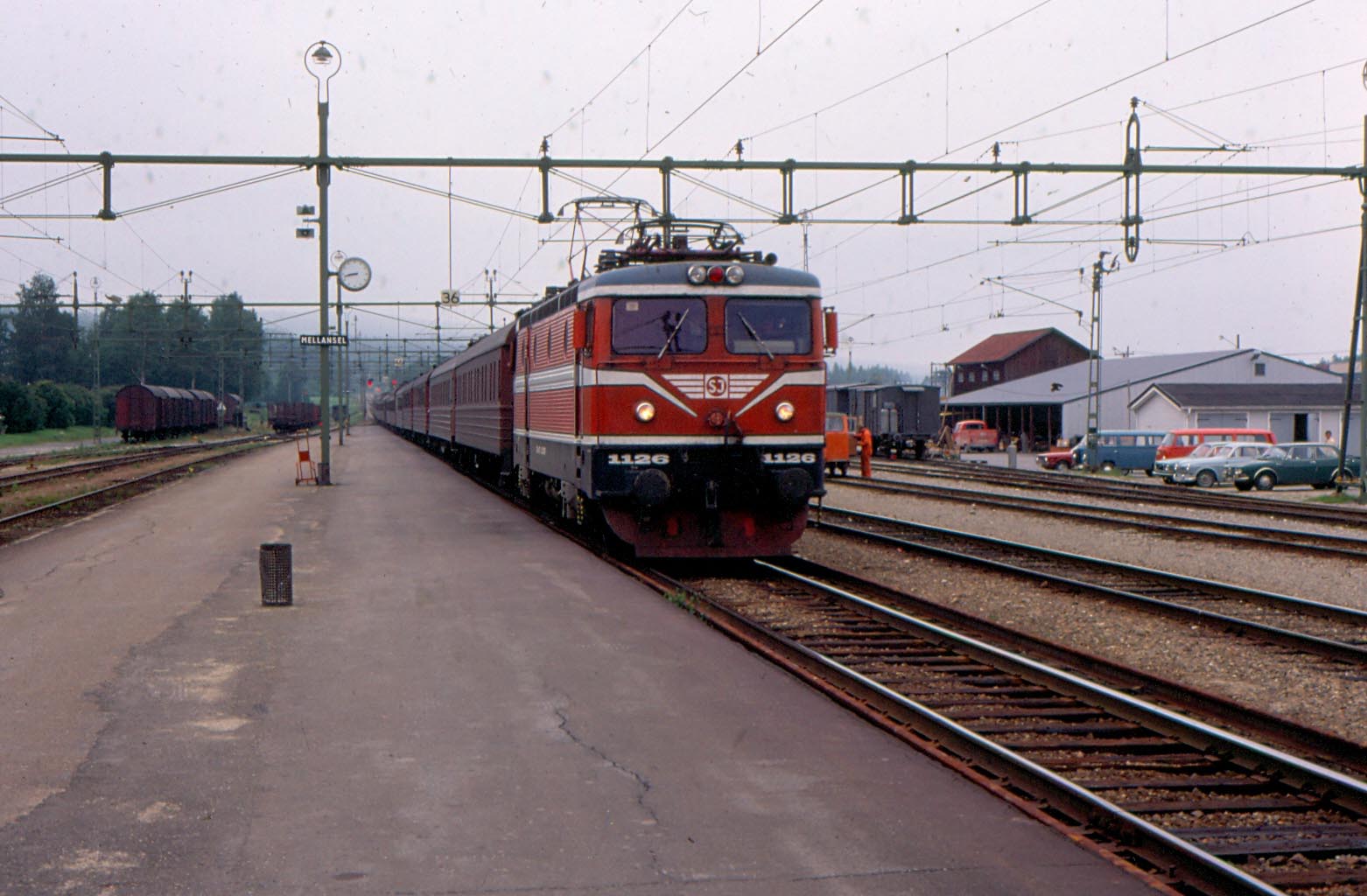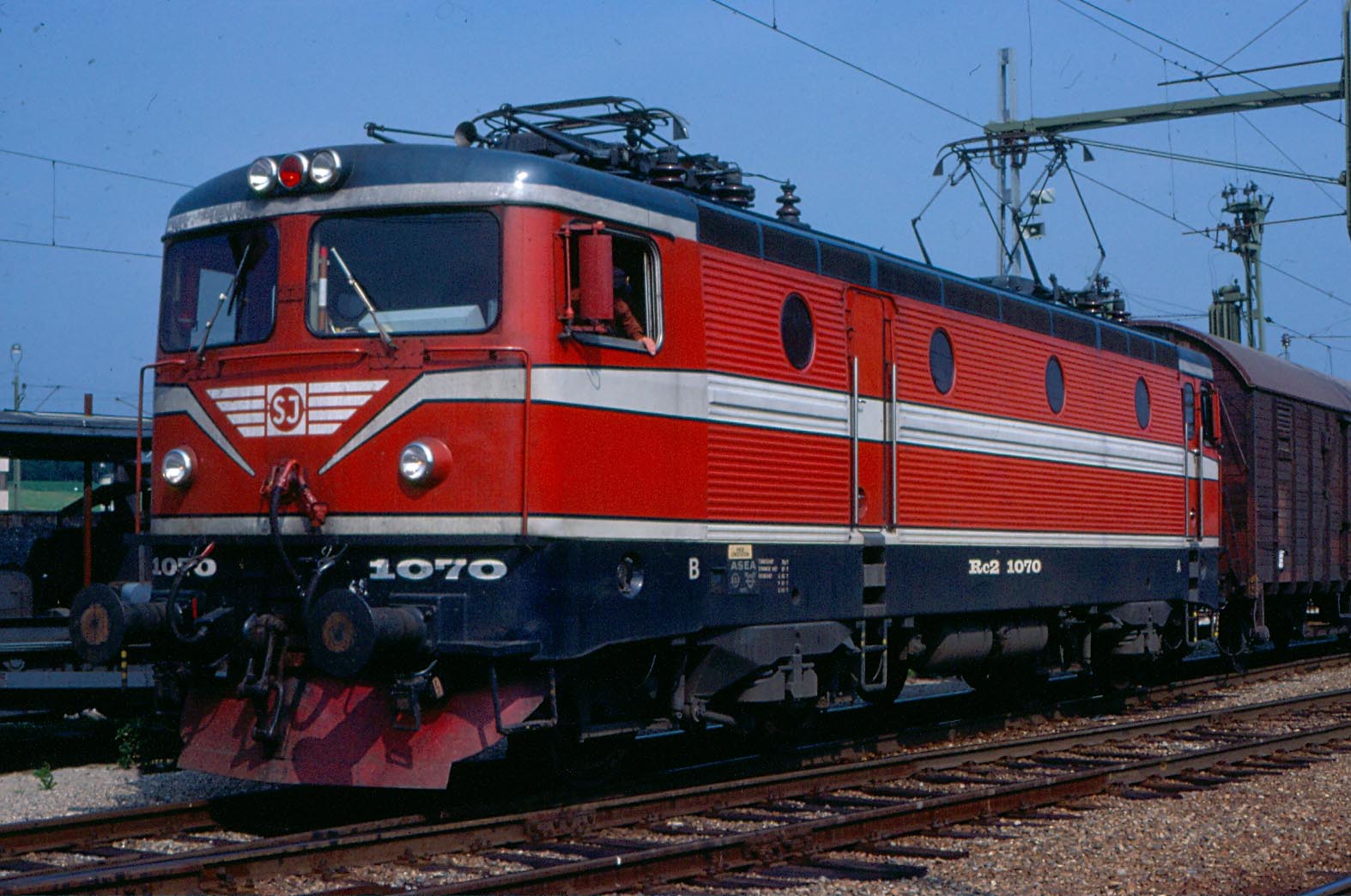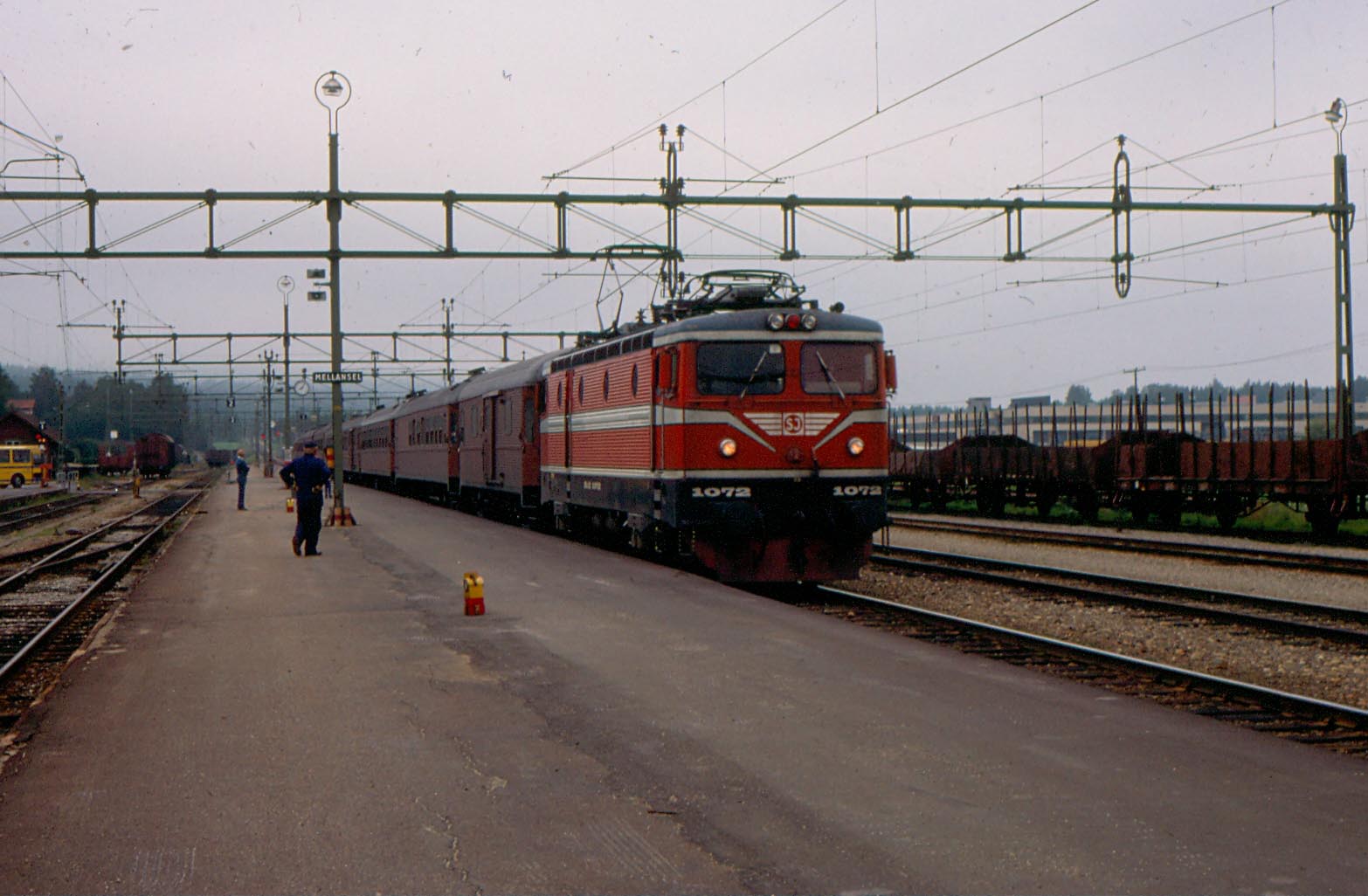 Rc2 1072 ankommer med resandetåg, lägg märke till