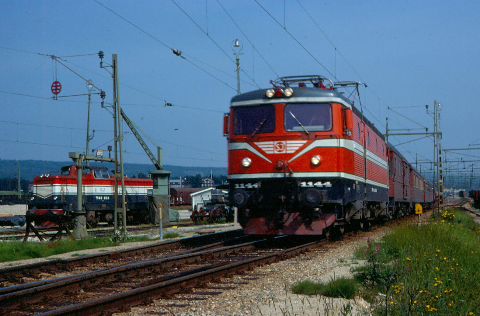 Rc2 1144 med persontåg på spår 3. |