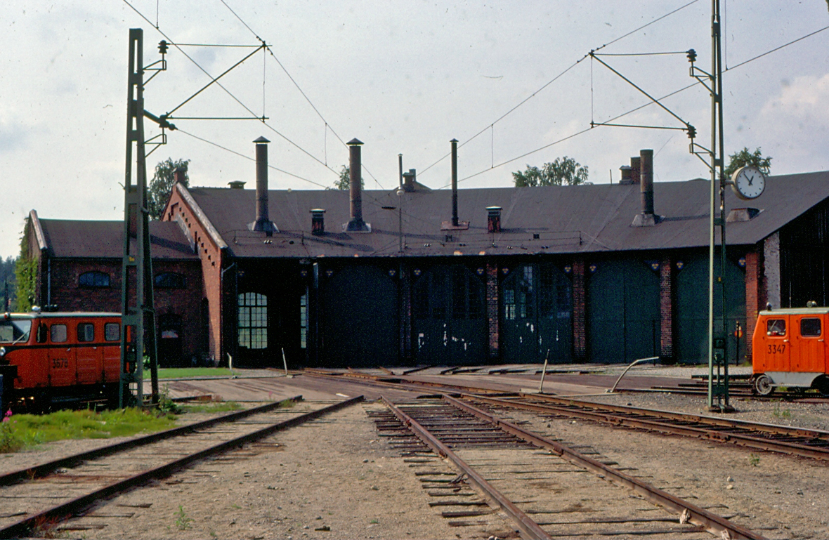 Lokstallet och motortralla 3678 och 3347. |