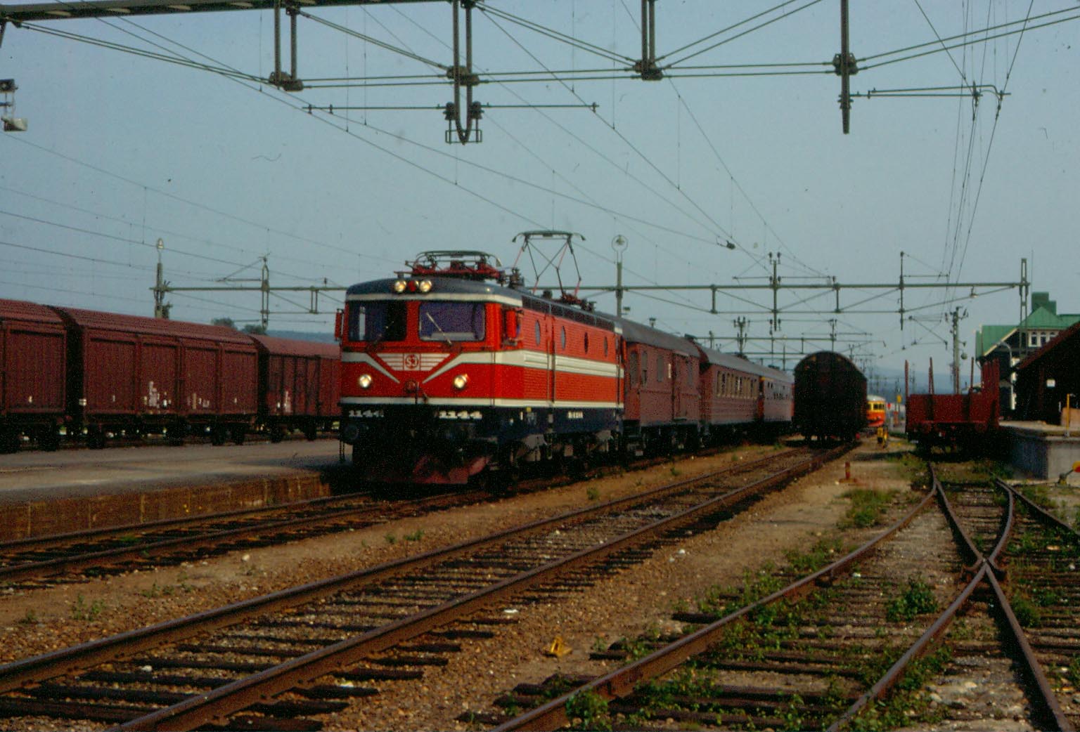 Rc2 1128 ankommer med resandetåg. |