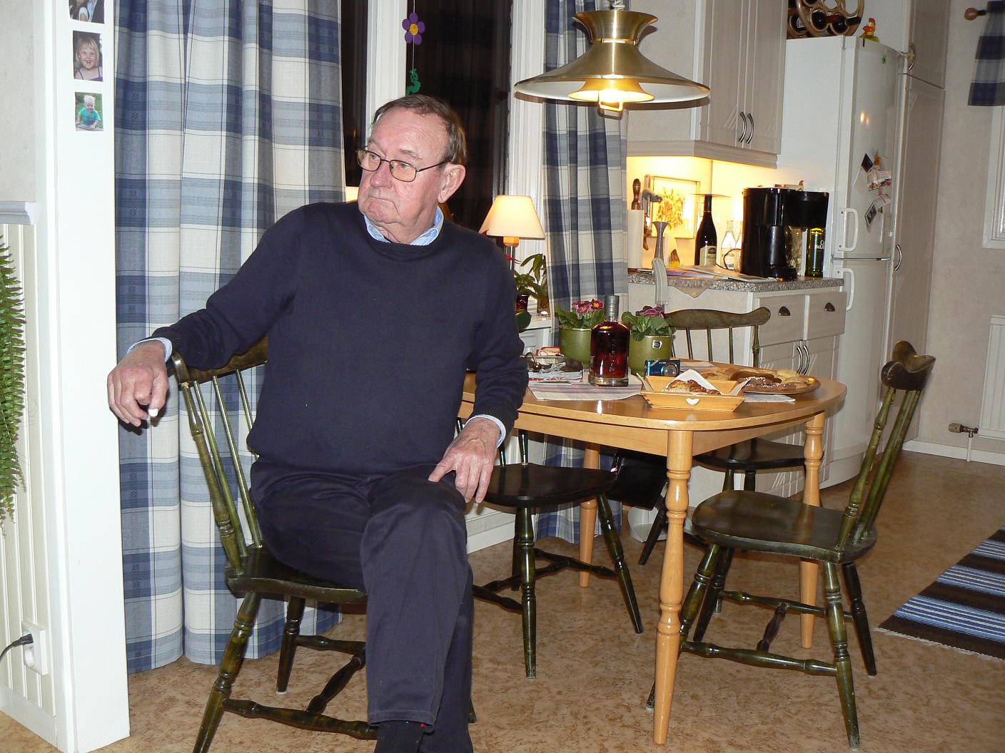 Pappa undrar om det blir konjak till kaffet. |