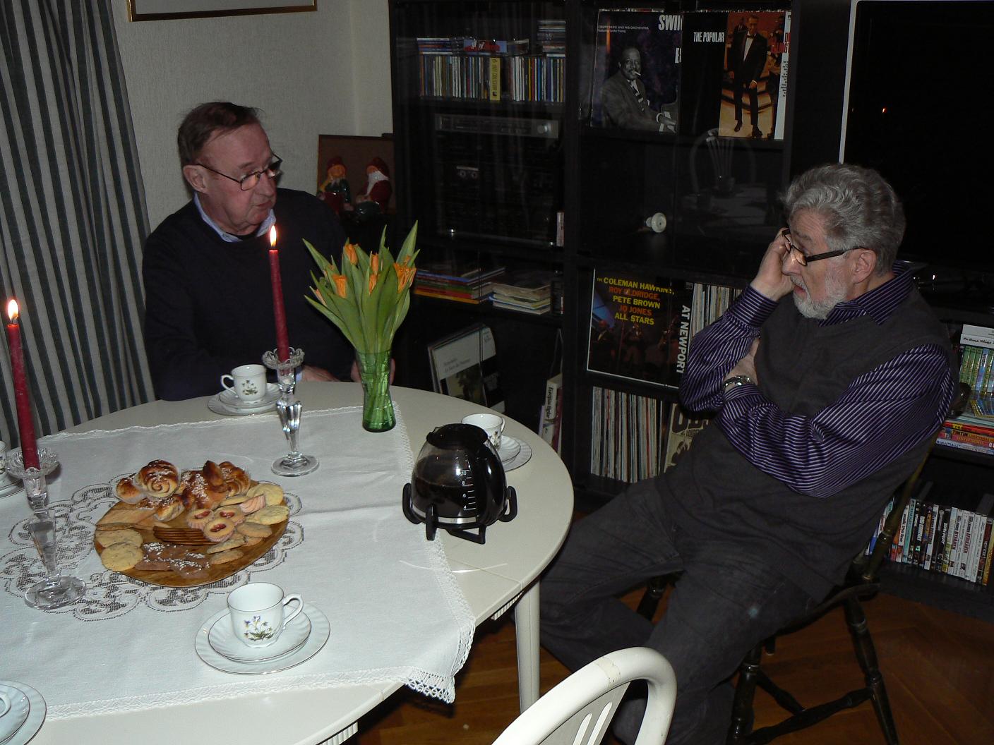 Staffan och Pappa diskuterar jazz. |