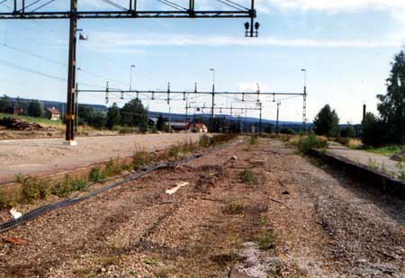 Vändskiva och utfartsspåret med demonterade kontaktledningar. |