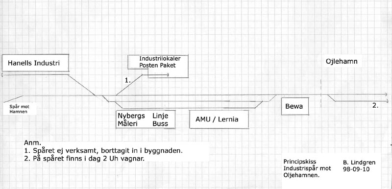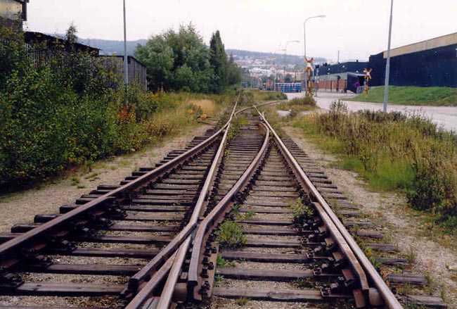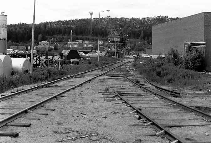 förgrunden sedd från oljehamnen, något längre fram ligger växeln till spår