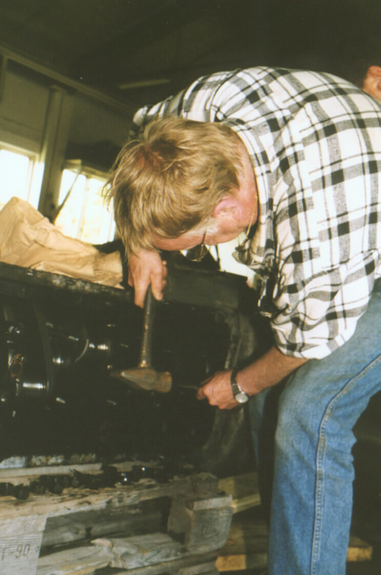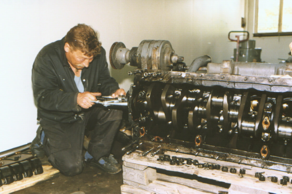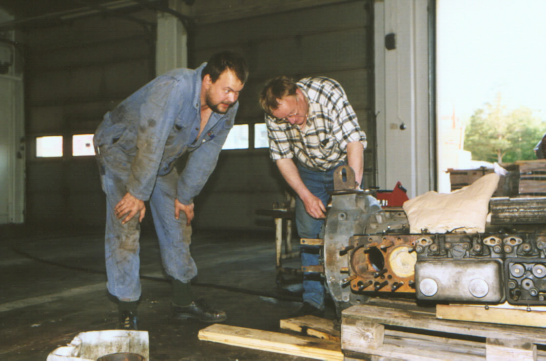 Kristoffersson inspekterar Scania dieseln inför renoveringen av densamma.