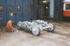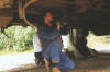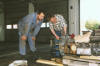 inlånade boggin medan Anders Andersson inspekterar arbetet.
