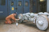 Bengt Lindgren lackar en nyligen reviderad boggi.